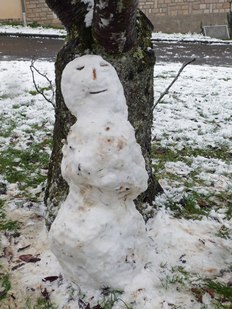 Et la neige justement il est était tombé pas mal ce vendredi 15 janvier, de la neige humide certes mais facile à rassembler et à modeler, bref du matériel de premier choix pour un bonhomme de neige.