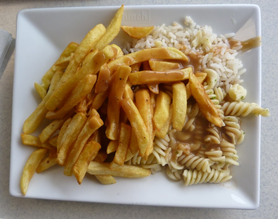 Ce soir après avoir eu la petite Gisèle (prénom changé) collée à moi et refusant de retourner vers sa mère qui la néglige un peu, je me dis que la vie c’est vraiment n’importe quoi à l’image de cette assiette que je me suis faite au Flunch à midi.