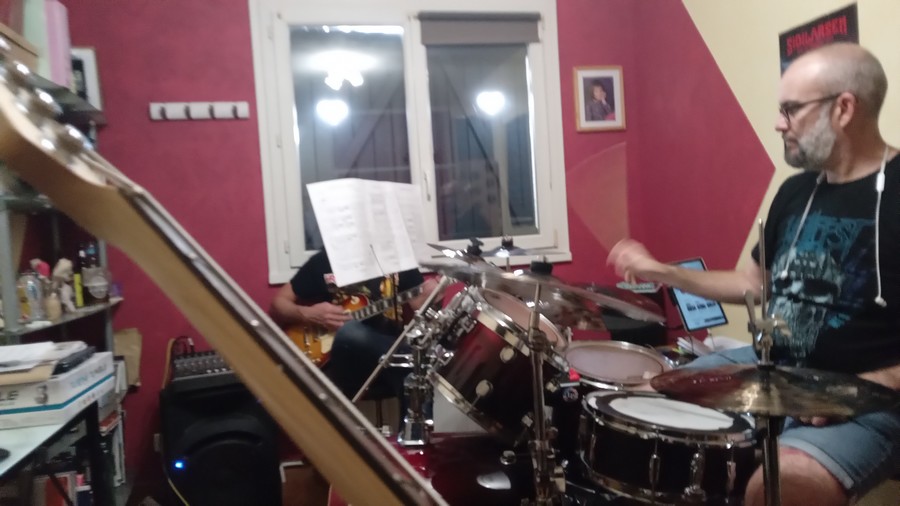 Je rentre de chez le copain Fred où j’ai passé un super moment avec le reste de notre groupe. Nous avons été ambitieux puisque nous avons joué un morceau compliqué mais cette première répétition autour de cette chanson nous amène tous au même constat; c’est plutôt pas mal et prometteur !
