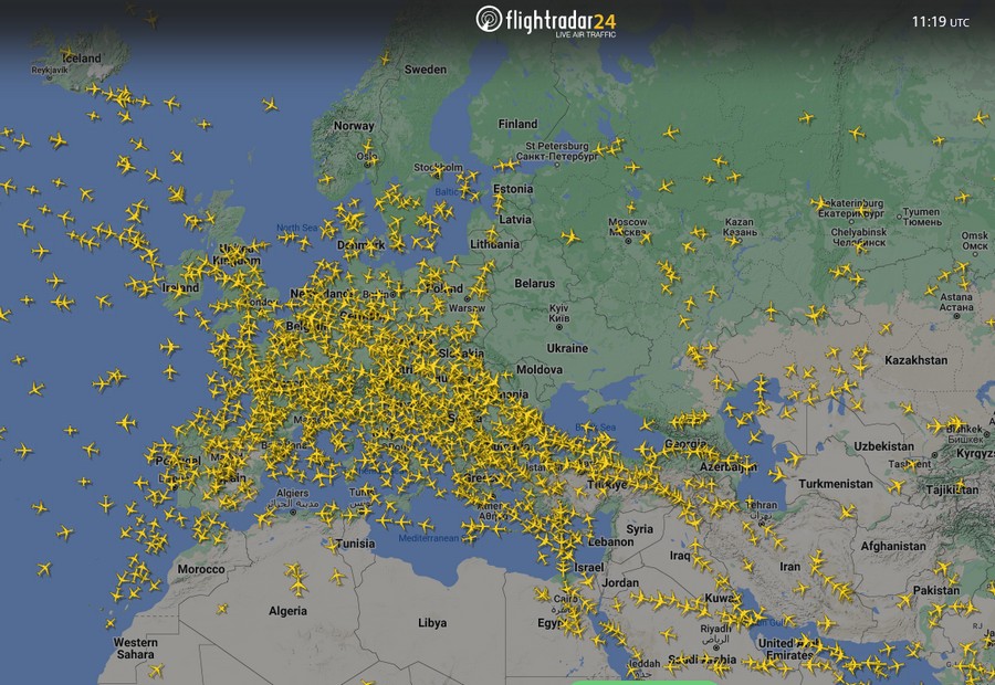 C’est le cas pour presque tous les avions y compris les avions de tourisme. On peut ainsi savoir quel est l’avion qui passe dans le ciel au dessus de nous, où il va, voire sa photo. On peut admirer le gros trou au dessus de l’Ukraine. On peut aussi hélas constater la densité du traffic aérien…